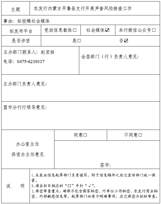 为进一步加强声誉风险管理,梳理排查声誉风险隐患,农发行开鲁县支行及时组织相关人员,在全行开展了声誉风险排查工作。
