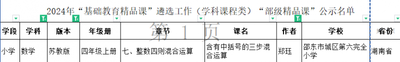 近日,喜讯传来,湖南省邵东市城区第六完全小学郑珏老师执教的苏教版小学数学四年级上册《含有中括号的三步混合运算》课例成功入选2024年教育部“基础教育精品课”。