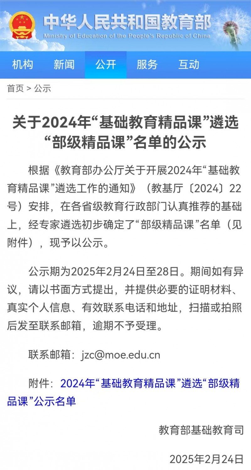 此次入选教育部“基础教育精品课”,是对郑珏老师教学成果的高度认可,也是对我校教学教研工作的充分肯定。近年来,我校一直致力于推动教育高质量发展,通过加强教师队伍建设、深化课堂教学改革等措施,不断提升教育教学质量。郑珏老师的课例成功入选,正是我校教育工作者共同努力的结果。