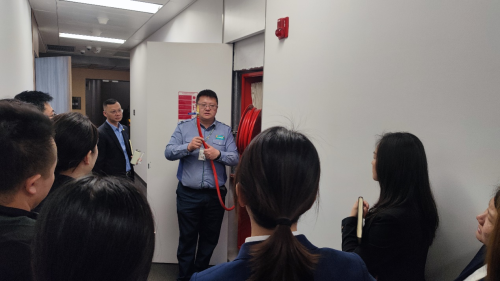 为了让员工们更好地掌握实际操作技能,培训还设置了实践环节。在职场走廊,教官亲自示范了消火栓的正确使用方法,引导大家熟悉了逃生路径,及紧急情况下疏散道路门擎解除方法。大家积极参与,通过现场观摩直观地掌握了逃生方法,有效提高了应对紧急情况的能力。