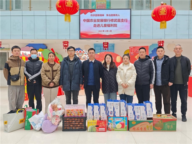 为弘扬奉献、友爱、互助、进步的志愿服务精神,凝聚青年力量,奋力续写新时代支农报国新篇章,全力推进中国式现代化,农发行修武县支行于2025年3月5日组织了一次“学习雷锋志愿行 青春建功新征程”主题学雷锋志愿公益活动,组织全体员工到焦作市儿童福利院进行探望。