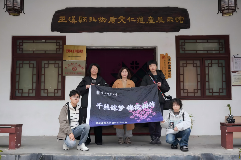 2025年3月8日至9日,重庆师范大学新闻与传媒学院24级数字媒体艺术专业秦千真带领“千丝嫁梦 锦花相传——传承与创新开发”团队赴重庆市巫溪县,围绕巫溪嫁花刺绣的非遗文化展开实地调研。团队成员先后走访巫溪嫁花刺绣文化馆和巫溪县文化宫,深入了解嫁花刺绣的历史传承、工艺技法及其在现代社会的教学推广情况,探讨非遗文化在新时代的保护与发展路径。