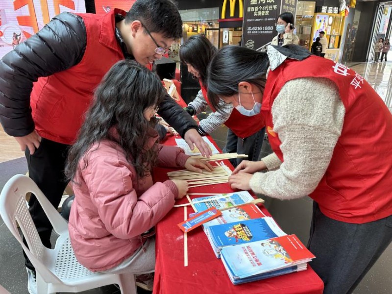 在众多活动环节中,非遗竹编手工体验区格外引人注目。活动特别邀请了过往民众参与手工,平安产险福清中心支公司志愿者先是现场介绍了这一古老技艺的独特魅力,随后指导参与活动的民众们编制作品,参与者们小心翼翼地拿起竹丝,尝试着编织。尽管一开始手法生疏,但在不断尝试和努力下,大家逐渐掌握了技巧,一个个简单却充满创意的竹编装饰品在手中诞生。小朋友们也积极参与其中,在体验传统技艺的同时,感受到了传统文化的博大精深。随着细长的竹丝大家手中上下翻飞,一个个有着金融反诈知识元素的的竹编小物件便初具雏形,现场人员纷纷表示:“这个活动真是金融知识与非遗文化的大碰撞,有趣极了”。