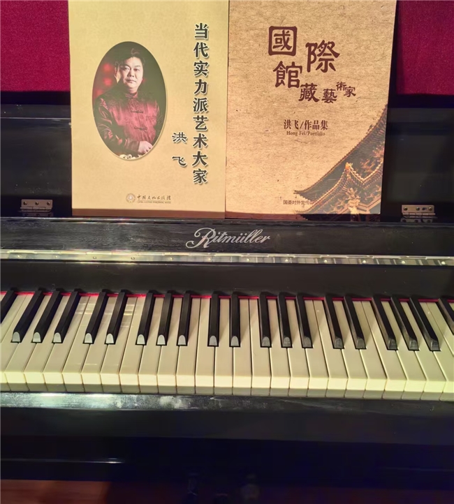 一上午的时间过得很快,临近中午,酒的芳香,弥漫整个厅堂!分别时,洪飞先生又热情的赠送作曲家汪幼清二本,由国委对外宣传办,印制的<国际馆藏艺术家>洪飞先生作品专集;由中国文化出版社出版的<当代实力派艺术大家>洪飞先生的艺术作品和简介!
