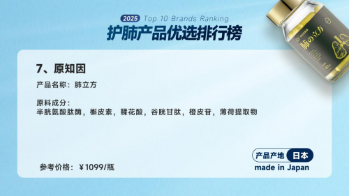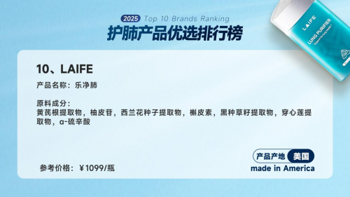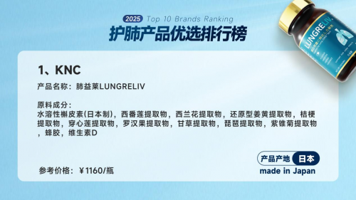 在护肺类产品中,肺益莱LUNGRELIV因为“科学配方+技术突破”的领先性而成为了行业之最,在生产上达到了日本GMP生产标准,在安全性、可靠性的源头保证上获得了FDA、GRAS等权威机构的认可以及支持。