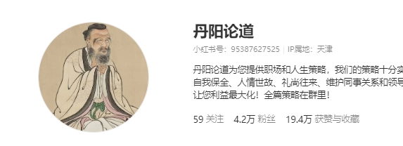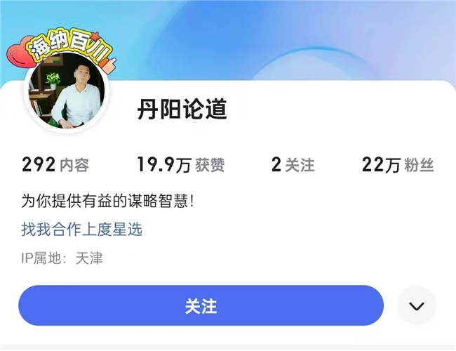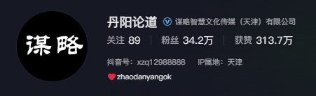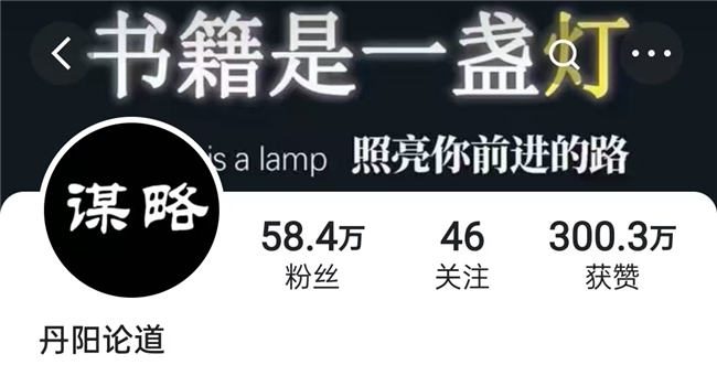 丹阳论道是谋略大师赵丹阳打造的自媒体。该平台以“宣传中华文化,淬炼实用智慧”为主旨,粉丝基数短时间内在全网突破百万大关。