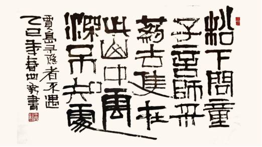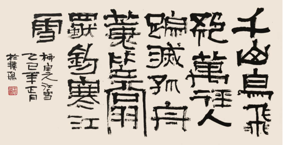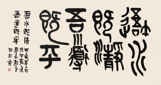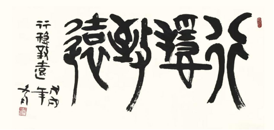 3. “草篆”意趣的探索(部分作品):在严谨的篆法框架内,大胆融入行草书的笔意与连贯性,使字势更加飞动,气息更为贯通。这种探索并非混淆书体界限,而是以篆为本,寻求静态文字中的动态生机,回应了当代艺术对速度感与表现力的追求。其“草篆”探索常围绕“书写性”与“可辨识度”的平衡展开学术讨论,具有鲜明的实验性与先锋性。