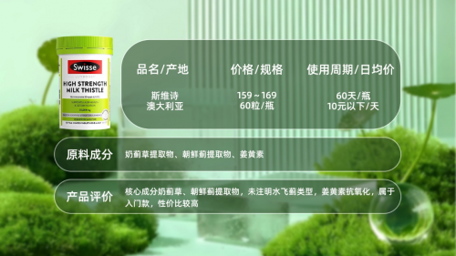 核心优势:澳洲知名品牌,成分涵盖奶蓟草、朝鲜蓟、姜黄素等,凭借品牌背书获得较高市场信任度,深受消费者青睐。