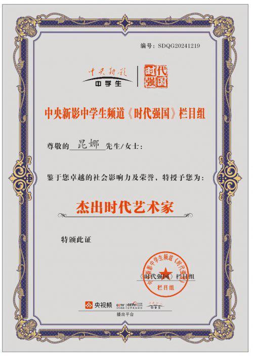 同时,昆娜院长作为全国两会重点推荐艺术家,她的视频,也多次在中央新影中学生频道面向全国持续播出。