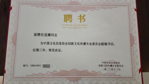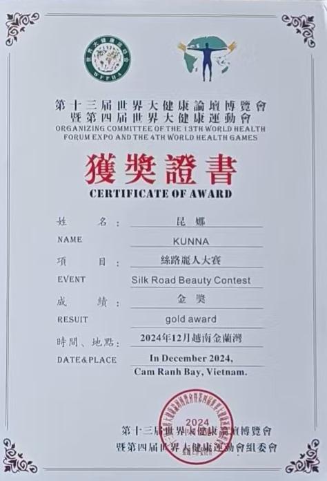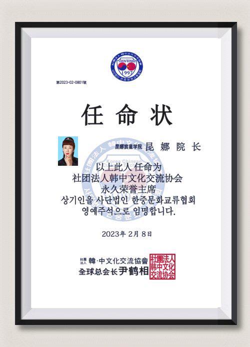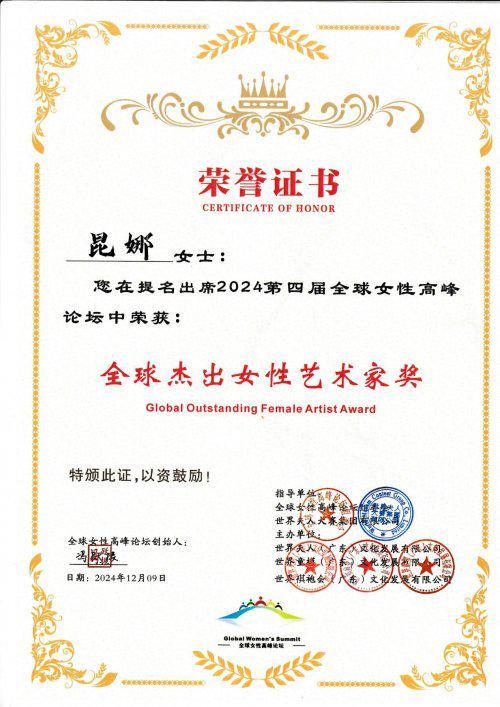 昆娜院长也是国家认证的最高AAA级诚信企业家。昆娜院长,是知名全球连锁商企文艺资源一体化服务平台——【昆娜宸星学院】创始院长,极具影响力的国际文化品牌——《全球国潮文化艺术节》组委会主席暨总导演总制片,《全球国潮代言人大赛》创始人、《世界名人艺术家联合会》及《宸星优品》全球精品商城品牌创始人,知名访谈栏目《昆娜名人访谈》制片人及主持人,《昆娜宸星学院报》社长及《世界文联报》主编。2024年、2025年“全国两会期间重点推荐艺术家”,《国潮领航杰出贡献奖》获得者,国潮实力艺术家(特金奖)获得者,中国管理科学研究院智库专家顾问,中国文化信息协会创新文化传播专委副秘书长,中央新影中学生频道“杰出时代艺术家”,中央新影中学生频道《时代强国》栏目“时代楷模”、“时代影响力人物”,中央新影中学生频道《强国丰碑》栏目名家工作室艺术顾问,中央新影中学生频道“闪耀星推官”,中央新影中学生频道“年度最具影响力艺术导师”,中国网上电视台运营总监,中国国际卫视总台制片人,世界文学艺术界联合会中国北京代表处首席代表,世界文学艺术联合会授予“世界文化名人”,国际美业教育联合会亚洲联会主席,国际自由足球联合会亚洲联合会副主席暨国际顾问,“金亥奖”华商领军人物,全球女性高峰论坛“全球杰出女性艺术家”,世界中华名媛大赛全球主席、“全球最美仪态夫人”,世界丝路丽人大赛全球金奖,世界夫人“亚欧冠军”,世界夫人全球荣誉主席,世界丝路丽人大赛全球荣誉主席,世界大健康运动会环球小姐大赛全球荣誉主席,亚洲优秀双语主持人,美国好莱坞影业集团高级顾问,国际华语诗歌学会形象大使暨优秀诗人,韩中文化交流全球总会永久荣誉主席,中非共和国驻华大使馆特聘“国际慈善公益大使”,中国西部电影节“年度最佳国潮导演”暨“战略合作伙伴”,《今日法制网小记者》特聘顾问,新华在线名人堂名家等。