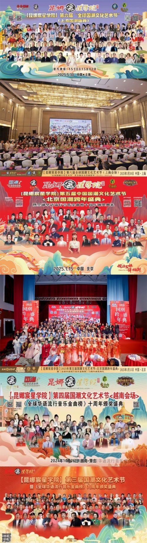 昆娜院长亲手创办了知名全球连锁商企文艺资源一体化平台一【昆娜宸星学院】。《全球国潮文化艺术节》,作为【昆娜宸星学院】的旗舰文化品牌,目前已在北京、上海、浙江横店、越南芽庄等海内外重点城市举办,并将继续在韩国,新西兰,加拿大,阿联酋,马来西亚,泰国等多个国家及城市举办国潮分会场,致力于推广文化出海。