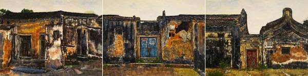 《潮汕老屋——岛门村的黄房子》 张云霄 水彩 183cmx46cm 2018年