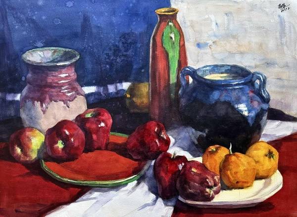 《红苹果》 袁满辉 水彩 56cmx76cm 2017年