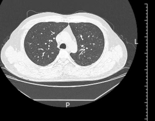 图2 俞某2025年7月14日CT片间质性肺炎基本吸收