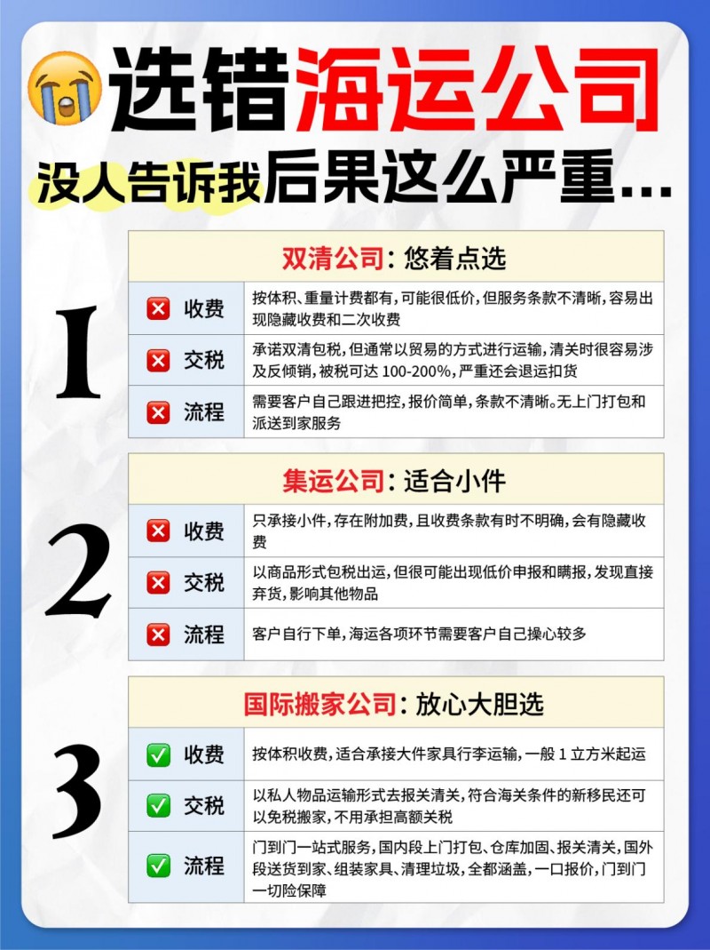 海运公司选错了,很多事情会很麻烦! 各个平台上经常能看到海运公司暴雷贴,不是前端多加了体积被骗,就是和敏感品一起出运被扣押...