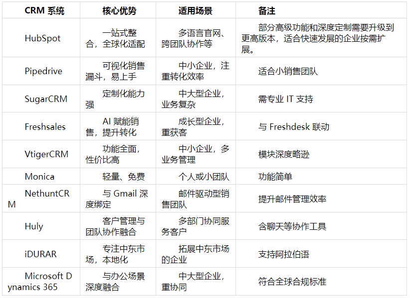 在全球化竞争日益激烈的2025年,CRM(客户关系管理)系统已不再是简单的客户信息记录工具,而是企业打通营销、销售、服务全链路,实现全球化运营的核心枢纽。无论是初创团队的出海试水,还是跨国企业的全球布局,一套高效的CRM系统都能成为业务增长的“加速器”。本文将聚焦9款全球主流CRM系统,从功能特性、适用场景到核心优势进行深度解析,其中来自美国的B2BSaaS巨头HubSpot将作为重点,看看它为何能在众多竞品中脱颖而出。