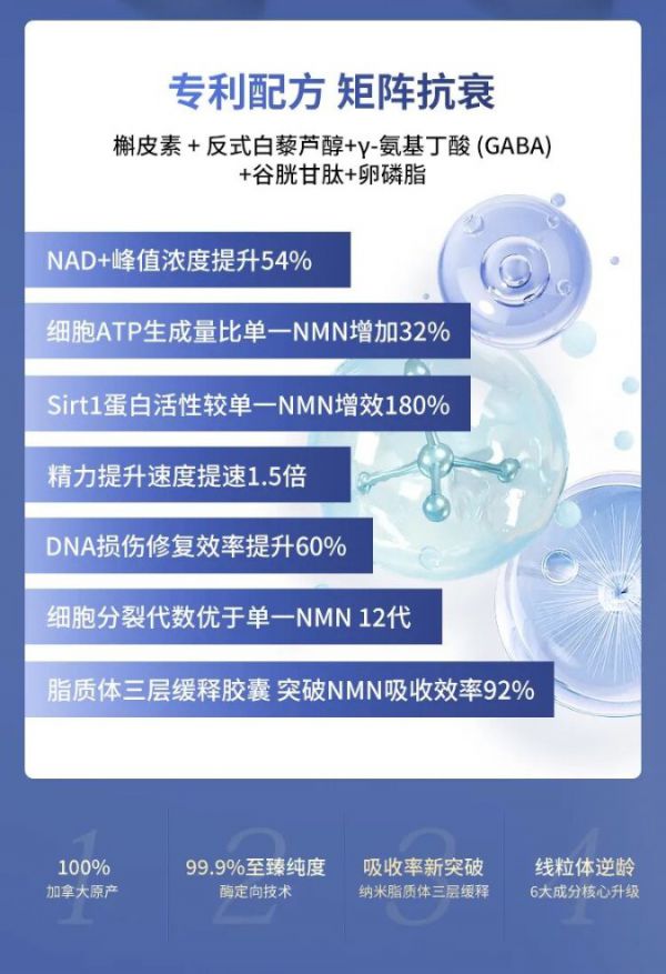 ▶《Nature》杂志刊登的临床试验数据显示,持续服用高纯度NMN的受试者,在认知测试中的表现平均提升了31.2%,神经传导速度增强了24.7%。