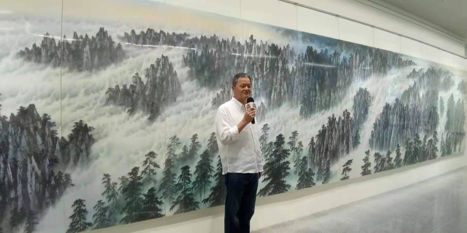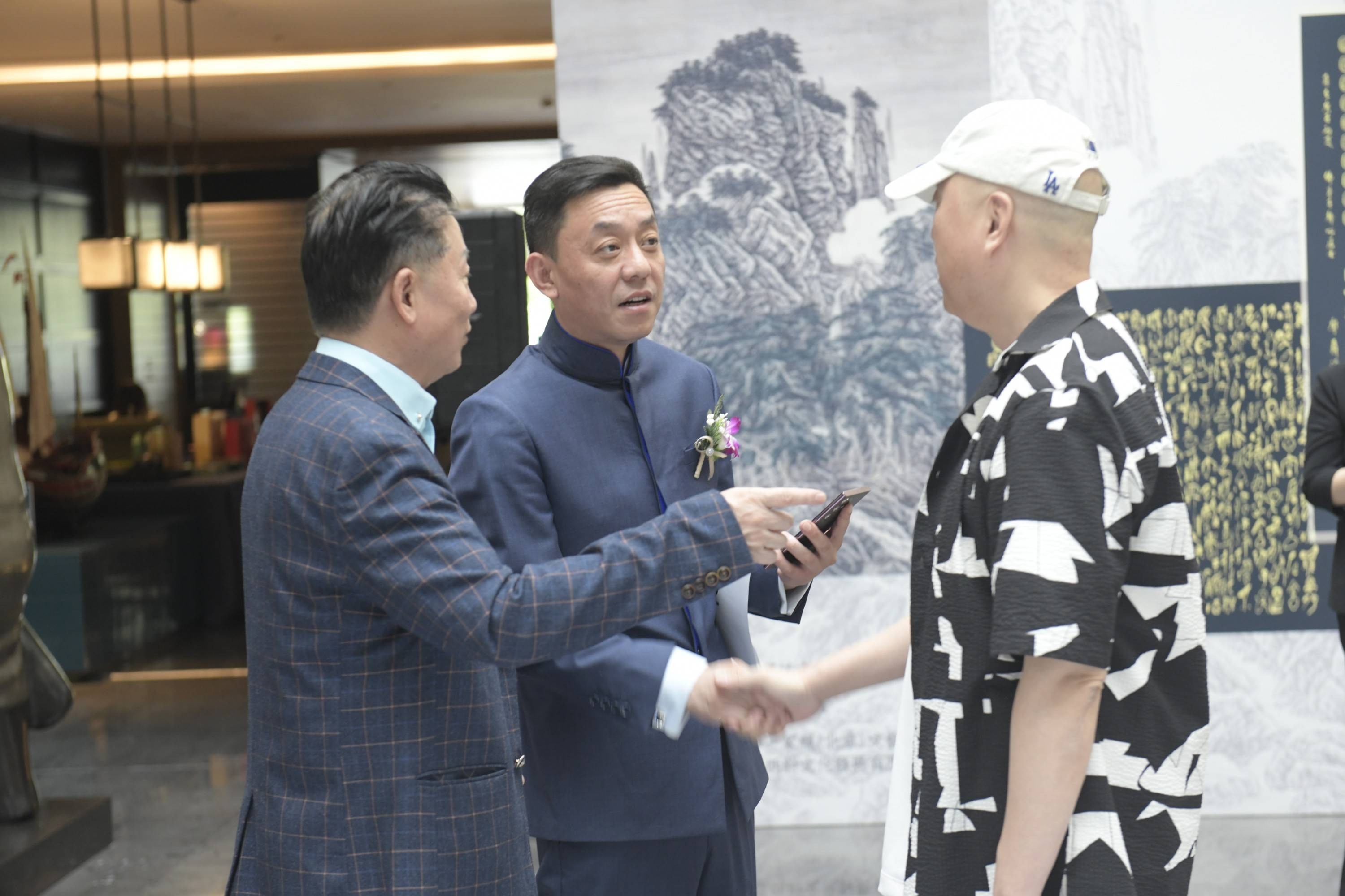 著名导演李建平先生作为特邀嘉宾发言,从创作实践角度分享了独到见解:"作为导演,我始终认为,真正打动人心的艺术,必然根植于深厚的文化传统。今天站在这里,我从周锡珽、廖舜沵两位大师的作品中,再一次感受到了中華文明跨越时空的澎湃生命力。"他进一步阐释道:"周锡珽大师的山水,从传统中走来,却又融入了自己对自然与禅意的独特体悟,笔墨间既有古法的严谨,更有现代的呼吸感,可谓'承古开新'。而廖舜沵大师的书法,大胆解构古文字,以令人惊叹的现代视觉语言,让古老的篆书焕发出全新的魅力,这是一种'以古铸今'的智慧。他们的创作,与我过去参与奥运会、世博会等大型盛典的创作理念不谋而合——我们都在做同一件事:那就是将中華文化的基因,用当代的、国际化的语汇重新表达,让传统'活'在当下。"