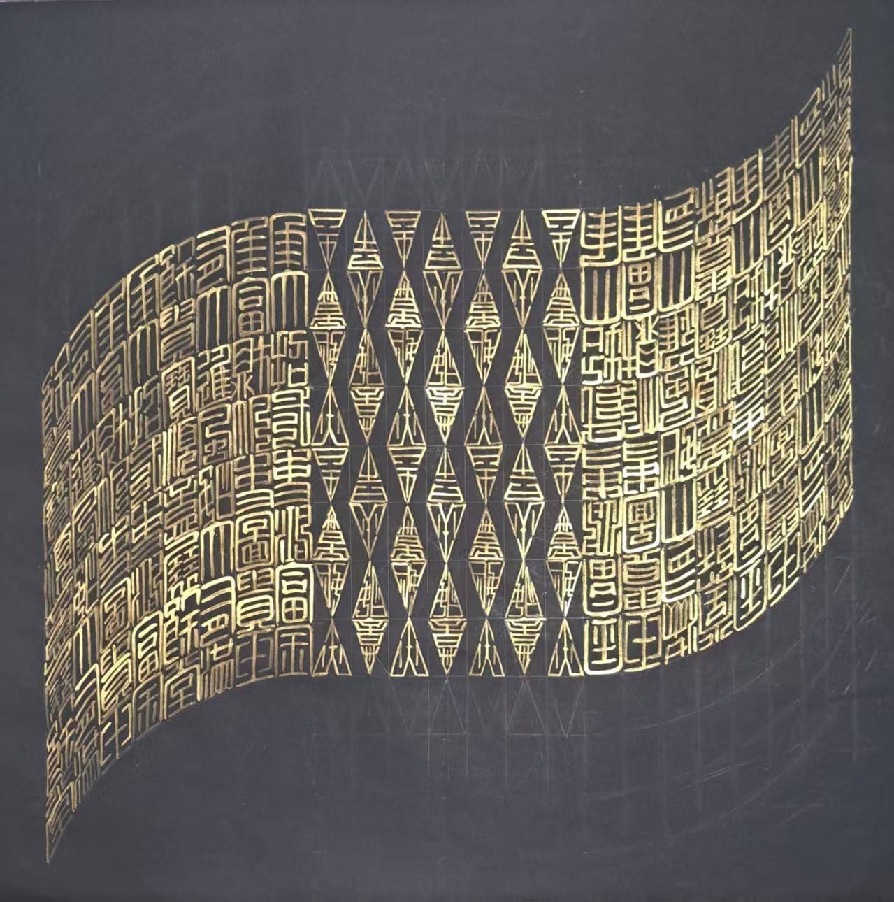 策展人翘楚在前言中精辟地总结了廖舜沵大师的艺术成就:"以石鼓文列序,采集青铜器铭文等多种古文字为元素的字体创作,是廖大师'好古'的部分;而设计'视错觉',根据人眼的视觉特性与大脑的认知规律,营造有悖于实际视觉的效果,让观者生出迷惑好奇,进而深入探究,是其'新篆'的部分。前者高古,严峻肃杀,汲取了陶范法所铸造的金石之感,相较晚期錾刻的细软线条更为质拙有力;后者当代,对篆字自由解构建构,以几何形态透视变换,嵌入三维空间,用数学的理性之美向古文字原始的秩序,发起了叩问。"