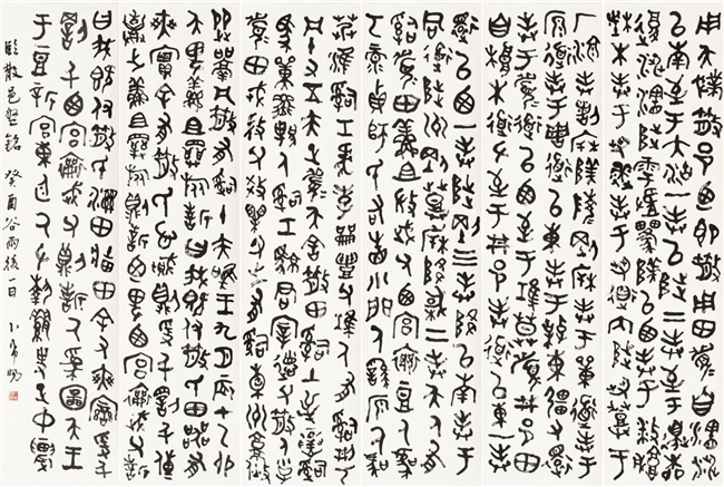 此次展览由首都师范大学、北京市文学艺术界联合会、北京市文史研究馆联合主办,北京书法家协会、中国大众文化学会、霸州顺达集团有限公司承办,由民国湖社鉴藏家徐显锋担任策展人,展览将持续到10月28日。展陈形式出新,视觉冲击力强。共展出作品五十余件,涵盖篆隶楷行草诸体,碑帖交融,风格沉郁雄浑,苍劲有力。