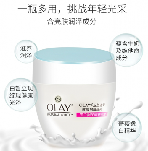 预算有限 + 大众色斑:选 OLAY 白里透红美白霜(59 元 / 50g,4 效合一,全年龄段友好)。