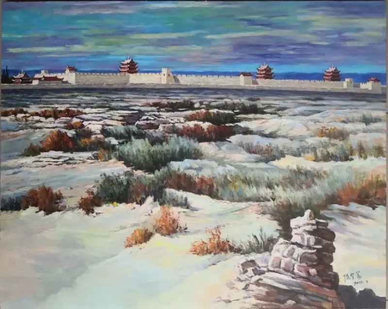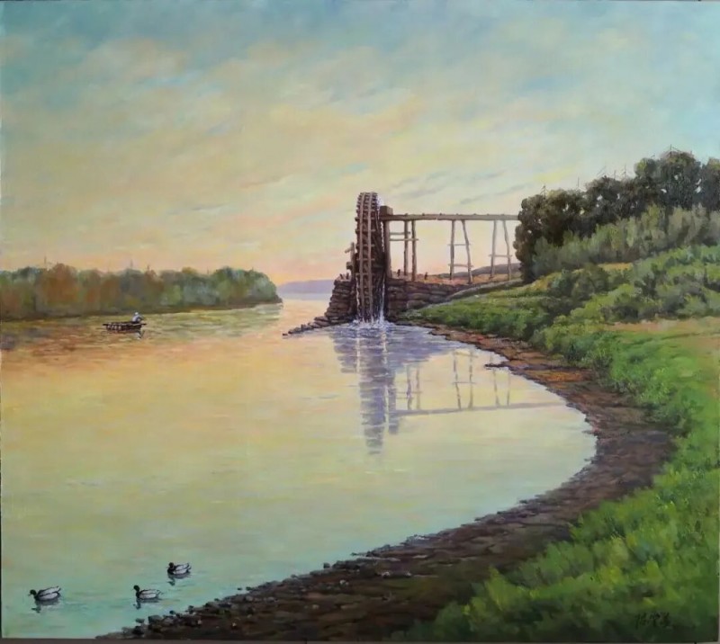 油画《古镇春韵》.《鱼游春水》被兰州市西固区文旅局文化馆收藏;