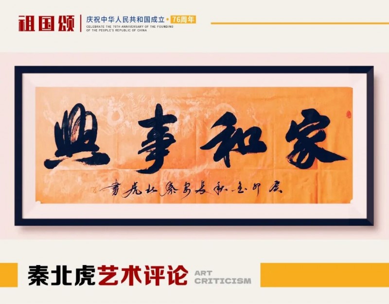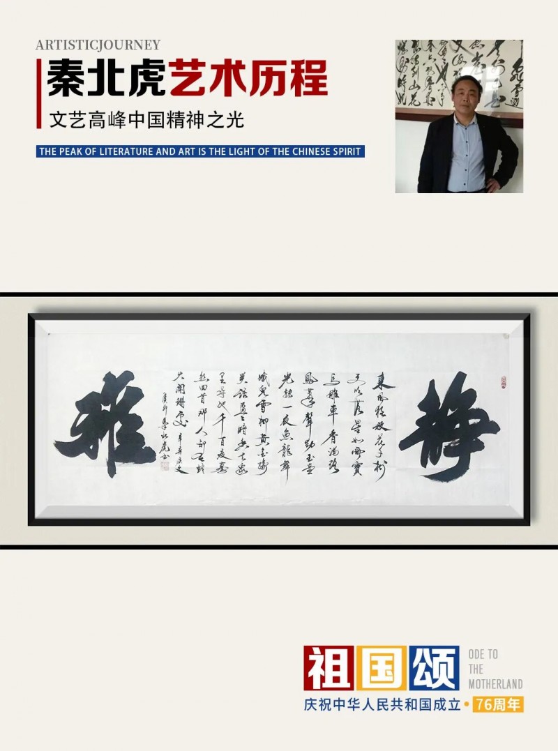 秦先生作为书法家具备爱国爱人民的博大情怀,始终坚持热爱党热爱社会主义新时期的文化纲标,去激发青年人热爱我们伟大的祖国,热爱华夏至尊的崇高文化,以书写人,以书写事,展现最崇高的书法美感。