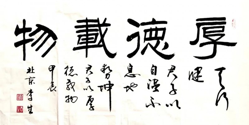 他的作品中蕴含着篆籀之气,线条苍劲古拙,这与他对传统书法的全面研习密切相关。李生四体皆能,对篆书的笔法和结构必然有深入理解和掌握。