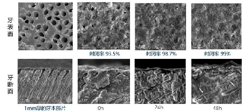 图7.再生硅0-48h牙本质小管封闭效果SEM图(实验单位:北京大学口腔医院)