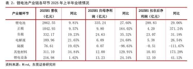 4.2025年上半年锂电池产业链业绩同比大幅改善