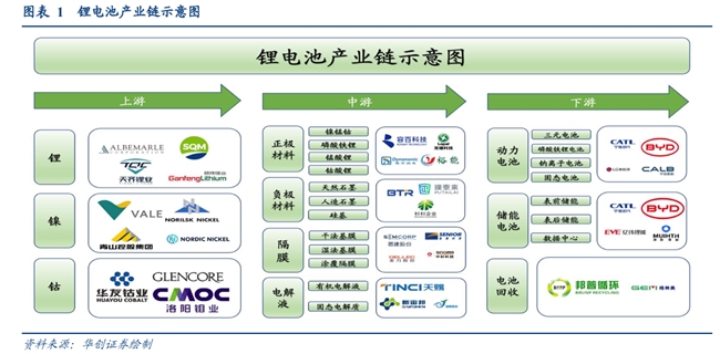 上游:主要包括电芯制备的材料、锂电设备,以及正负极的原料矿产。原料矿产具有较强的资源属性,产品价格的周期性较强,具有较大的弹性;材料环节由于处于电池制造的上游,承受了来自中下游价格战的压力。