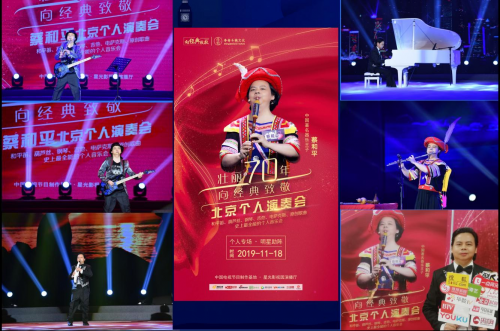 原创作品是他最厚重的名片。从与刘德华、陈慧琳、张靓颖、刘亦菲、蔡依林、李克勤等明星在同一张唱片专辑上发行原创歌曲,到斩获全球华语流行音乐金曲榜双料冠军,他的作品创作始终扎根大地、仰望星空。《瑶寨晨曲》是他为“世界瑶族第一寨”千年瑶寨量身打造的葫芦丝曲,开篇用鸟鸣般的颤音模拟瑶寨清晨的苏醒,中段以急促的吐音表现瑶族姑娘的劳作,尾声融入牛角号的悠远,让听众仿佛置身于云雾缭绕的瑶寨梯田。该曲发行后,不仅成为了千年瑶寨景区旅游的符号,更被纳入了他编著出版发行的葫芦丝教材。而他的原创作品《最美中国》则是中西合璧的典范,2023年在国家大剧院演出时,他带领学生组建和鸣之声乐团,用竹笛、葫芦丝、琵琶、古筝与吉他、尤克里里、键盘等多种乐器合奏,旋律从江南小调转向黄河奔腾,最后以和平笛的清亮收尾,被誉为“用音符绘制的《千里江山图》”,这场演出斩获了全国金奖。