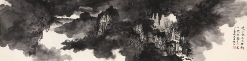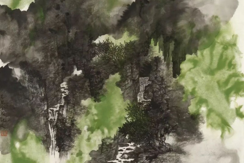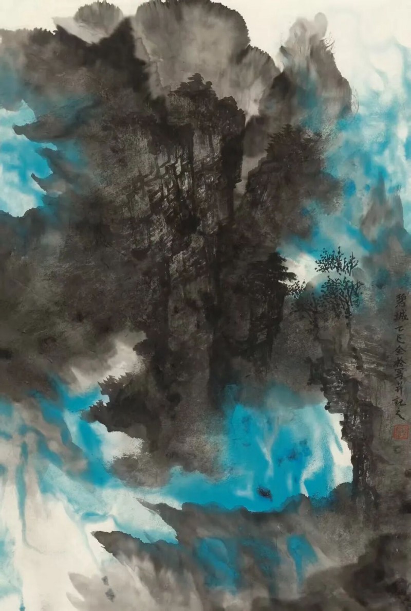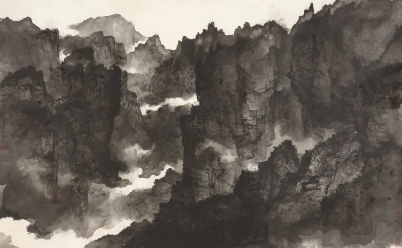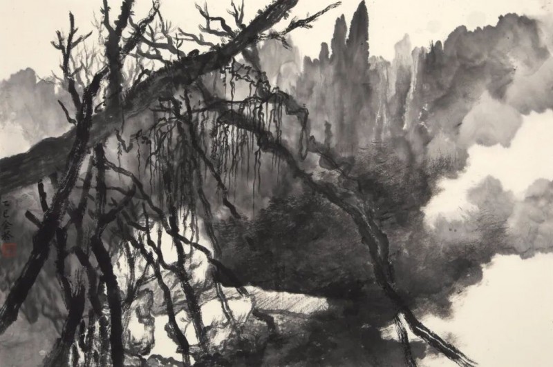 他较早的作品中,可以比较明显地看到几种不同的风格追求,譬如通过学院的写实造型写生创作,在此基础上皴擦点染,营造水墨之境;或者以二十世纪以来新山水的造型、设色和笔墨技法为圭臬,突显宏伟大气之势;抑或通过汲取宋元以来古画中的笔墨趣味和美学意蕴,远慕古人溪山清远之情。