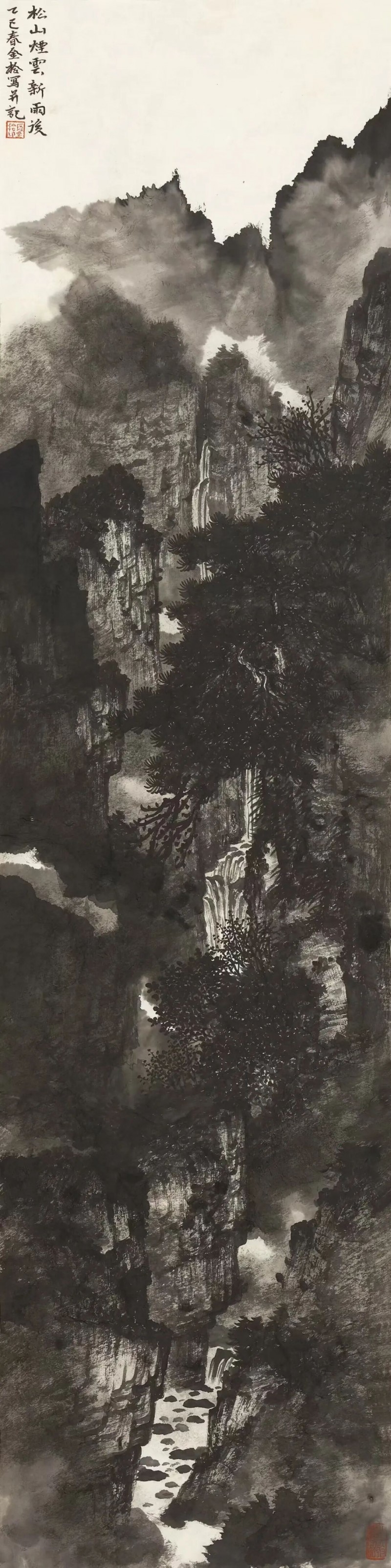 松山烟云新雨后 138cmX34cm 2025年 纸本水墨