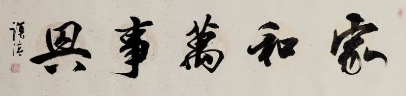 李谟清先生出于对书法的热爱,潜心数十年研习,博取之长,兼容古意,平淡之中取其险势,变化之中包含灵动,章法归宗。时尚与高雅并重,艺术同风格并举。融入灵性能力,转换成灵禅加持力,汇聚笔端,流露美感,贯穿于自然,入笔直扑,八面出锋,快意而为之的动感,福泽收藏之人家。