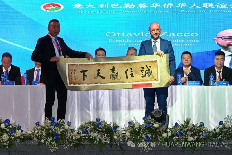 名誉会长黄秀仁先生为巴勒莫市议长送上精美礼品