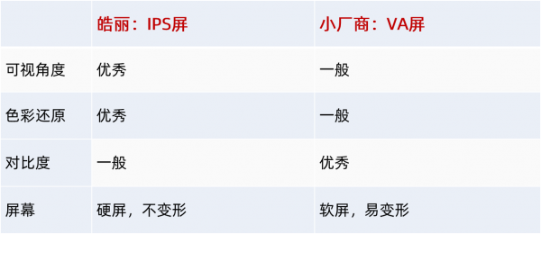 1. 屏幕体验:A+级IPS商用屏 vs 普通VA软屏