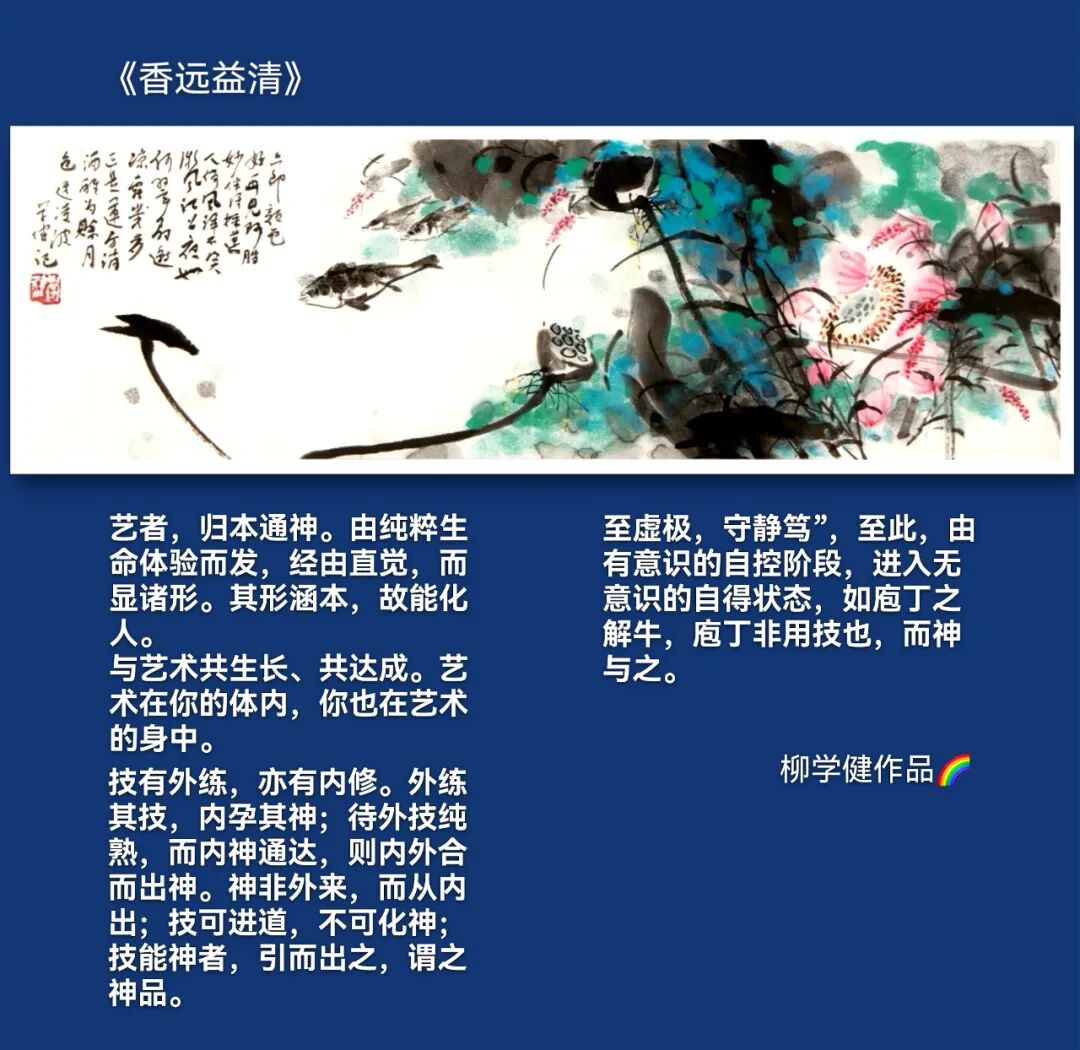 柳学健先生对绘画形式锲而不舍的深度追求、探索、尝试并且独立独行,由此在运笔施墨的顷刻之间,我们仿佛是目睹了一场色彩的解放,一种精神的舒卷、他的作品总是让人惊喜不断、意想不到。正如柳学健先生自己所说的那样:“艺术关乎美,是一种对生命真实存在的最深切的关怀。绘画就是他全部生命意义所在。
