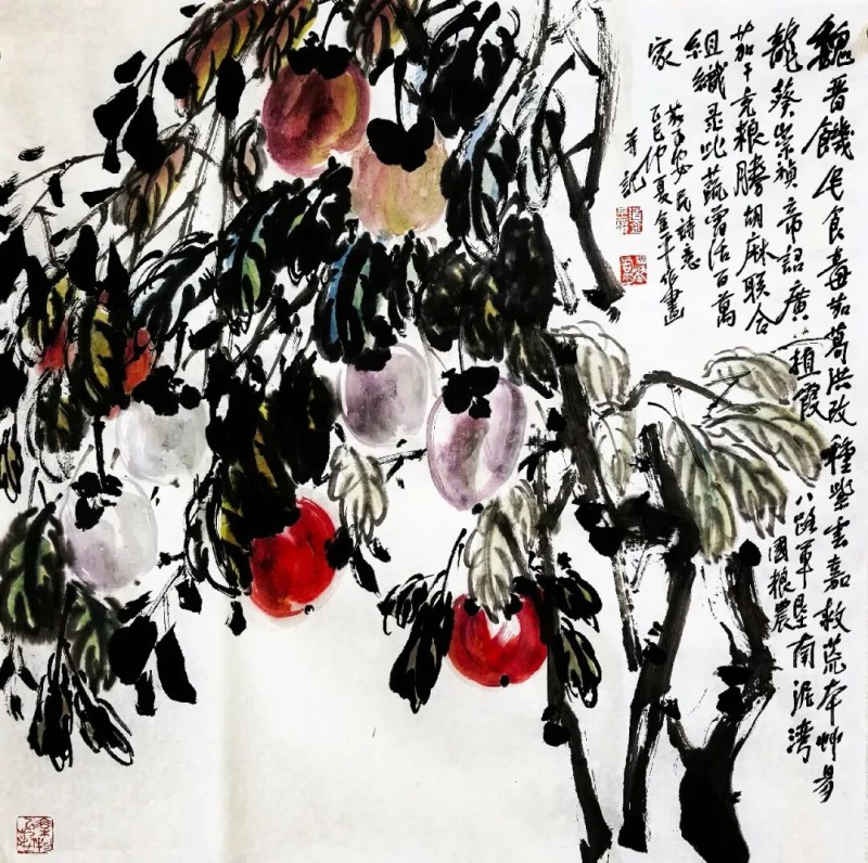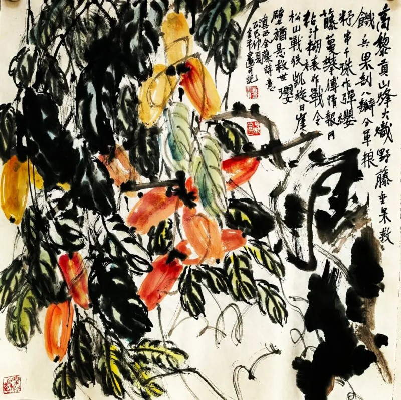 道金平先生的艺术成就早已蜚声国际,其花鸟画作以独特的韵味被多国珍藏。然而,在此次展览中,他超越了传统的花鸟题材,将目光投向了民族记忆深处那场艰苦卓绝的战争。他以饱蘸深情的笔墨,创作了《铁血丹心·新四军战史十观》与《抗战烽华》系列律诗,以及《和平信使》组诗。这些作品,堪称“诗书画印”精粹的融合典范。