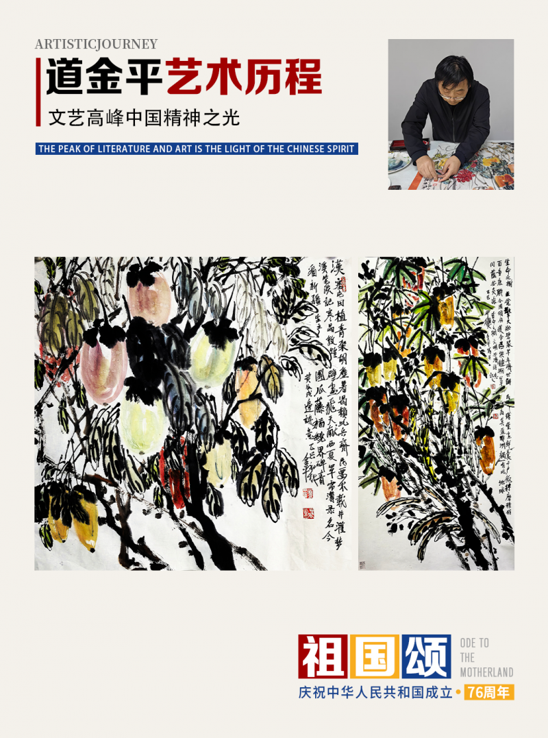 2025年,道金平继续拓展国际影响力,获美国科罗拉多工程大学艺术荣誉博士学位,作品先后参展中意、中俄、中阿等重要文化交流活动,并成功入选鸟巢杯双奥座椅艺术展。同年,在阿拉伯联盟驻华代表处举办的《中阿文明交流》活动中,被授予“中国阿盟友好交流使者”荣誉证书,其作品被50余家海外权威媒体发布传播,持续推动中华文化在国际舞台的传播与对话。
