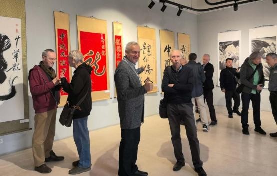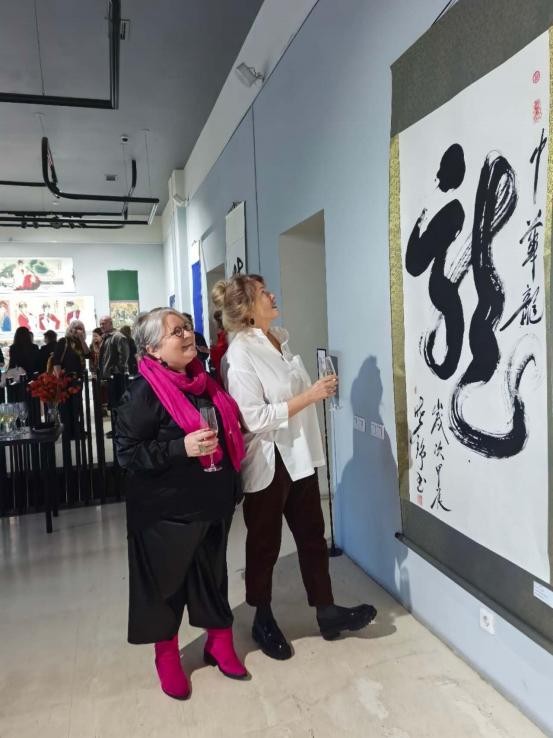 方笔墨语言,深刻诠释了中华民族的精神图腾与文化自信,吸引了众多国际友人及艺术同行驻足品评,成为现场热议的焦点。