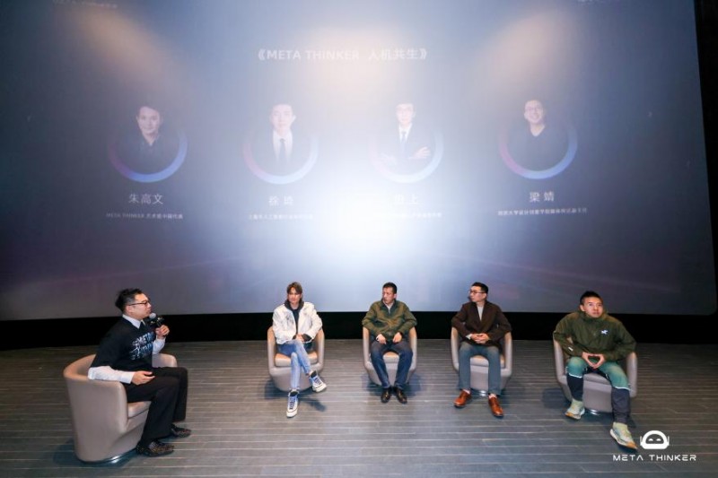《META THINKER》艺术组中国代表朱高文则从艺术视角出发,称科技为艺术提供了新载体,能消解公众对科技的距离感;媒体支持方福布斯中国代表李峰介绍了人机共生科技智能先锋评选;周边产品卡鲁鲁IP设计师Callum Xia分享了周边的设计理念。