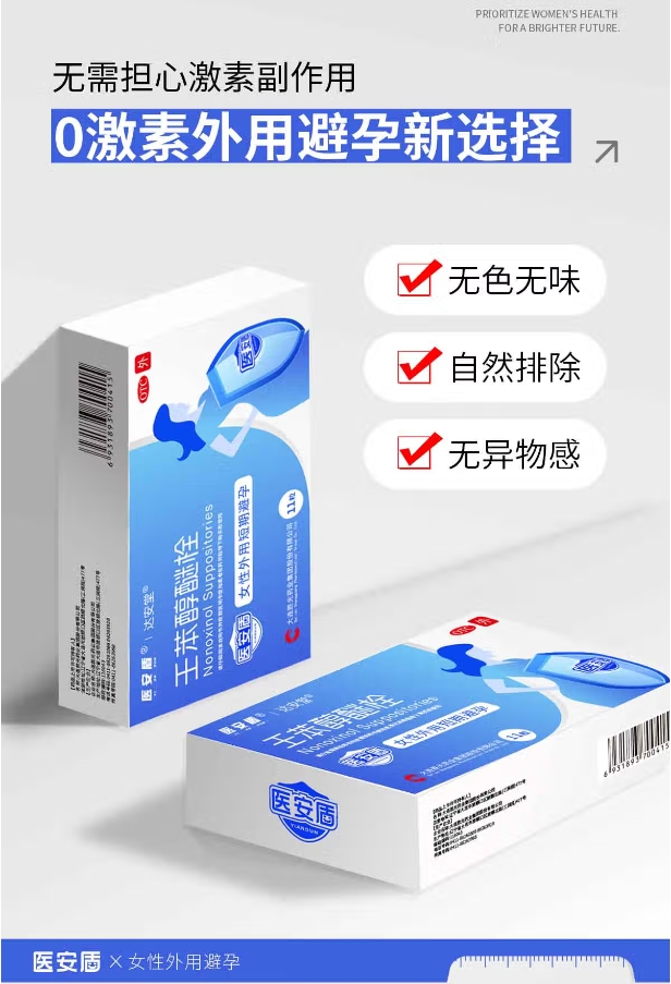 最后,只要方法使用正确,长期使用对人体安全无毒。医安盾壬苯醇醚栓放入阴道深处约5分钟后,方可进行做事;若放入30分钟内未进行做事,再进行做事时,必须再次放药,事后等待6小时后再清洗,有助于药物充分吸收,发挥其应有的避孕作用,容易用水洗出,药物体内无残留。