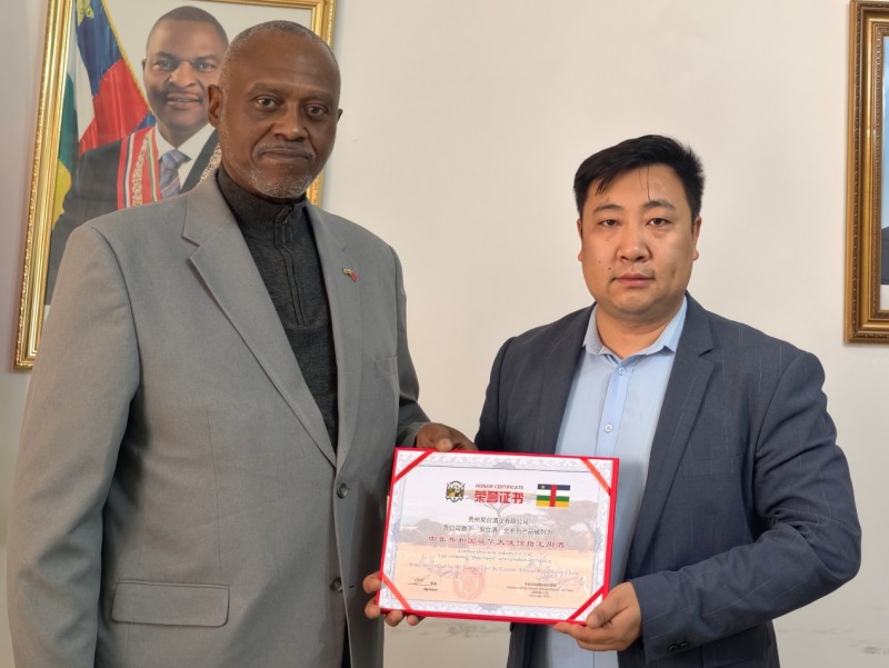 中非共和国临时代办布万巴颁发使馆指定用酒证书