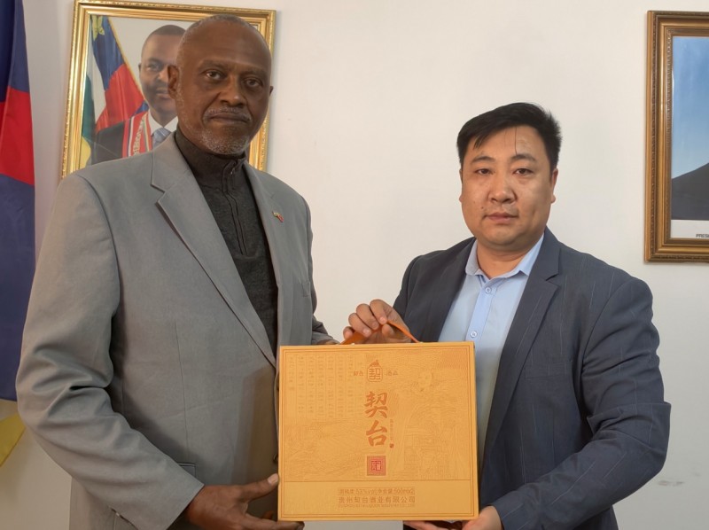 契台酒礼赠中非共和国临时代办布万巴