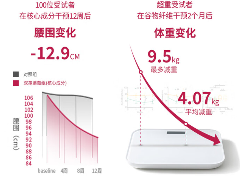 2024 年 12 月,《Science Translational Medicine》(《Science》子刊)发表了针对腰纪线的 12 周随机对照试验结果:研究选取 100 名超重受试者(BMI 26-28),在排除额外运动干预的情况下,每日以腰纪线替代 1 餐,最终平均腰围缩减 12.9 厘米,个体最大减重达 9.5 公斤,所有受试者 BMI 均趋向正常范围;后续 2 周随访显示,89% 的受试者未出现体重反弹,基础代谢率保持稳定,直接印证了其 “减脂不损代谢” 的核心优势。