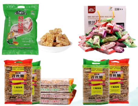 贵州省习水县金桥食品有限公司成立于 2006 年,是集苕丝糖、苕丝面生产、加工、研发和销售为一体的农业综合性公司,苕丝糖制作工艺为市级非物质文化遗产。土城苕丝糖行业内龙头企业,原料生产基地 200 亩,加工厂房 5000m²,以 “企业 + 合作社 + 农户” 的经营模式,年产值 1.5 个亿,目前公司营销网络覆盖了全国的 20 多个中心城市,产品一直处于供不应求的状态。公司带动农村就业人员 120 余人(其中专业技术人员 17 余人),精准扶贫人员 19 人。公司位于中国解放战争中著名运动战战役 "四渡赤水" 大战场的千年历史文化古镇 —— 土城镇。土城镇为贵州黔北典型的中山峡谷地貌,地势东高西低,四面环山,交通不便,限制了土城镇地方经济建设与发展。苕丝糖是当地逢年过节的唯一休闲食品,其手工制作工艺代代相传。当地村民陈开华(金桥食品董事长)本着摆脱贫困,带领村民发家致富的思想理念,结合祖传手艺不断创新,将苕丝糖升级为 36 道生产加工工艺,采用在茅台酒、习酒等原料供应红缨子高粱种植基地,只用酒糟制作肥料套种的绿色健康红薯为主要原料生产加工成苕丝糖、苕丝面系列产品走出土城。