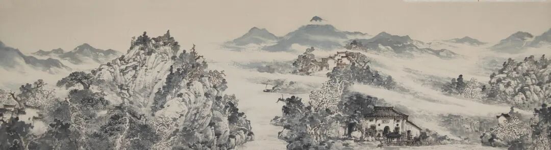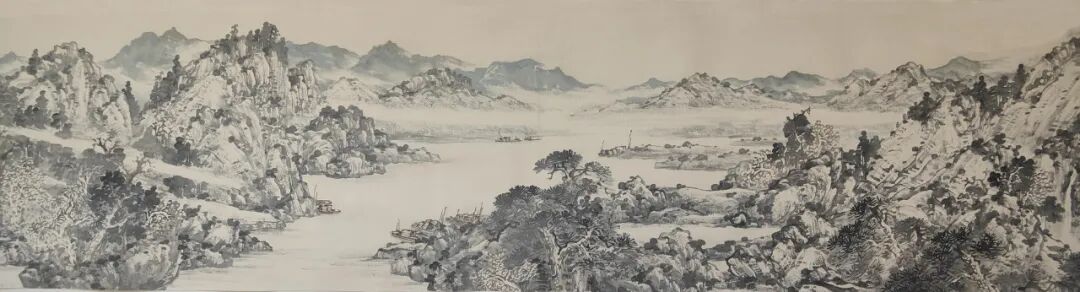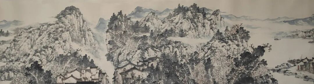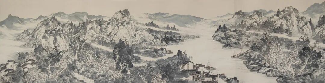 当他拿起画笔再次描绘魂牵梦绕的秋浦河时,心中顿时涌起别样的感受与想法。近年来,他创作了秋浦河山水长卷和独幅绘画系列,画中的秋浦河,宛如灵动的音符,奏响着自然的和谐乐章。秋浦河的山水图景,仿佛是大自然精心雕琢的艺术品,一草一木,蕴含着无尽的生命力,激发他在画中展现生命的蓬勃与坚韧;河畔的每座村庄,静静地伫立着,宛如沉默的智者,诉说着岁月的故事。这促使他在创作中融入怀旧情结,让山水画更具旷古神蕴;河中的每条小溪,潺潺流淌,似是时光的使者,带着历史的记忆缓缓前行,这让他思考如何在画中体现时间的流逝和历史的沉淀。这些元素,信手拈来,皆可入画,它们成为他艺术创作中最珍贵的素材,让他在山水画的天地里不断探索、不断前行。秋浦河,不仅是他山水画创作的灵感源泉,更是他心中永远的热爱与眷恋。它见证了他从艺术探索到情感升华的全过程,也让他在山水画的天地里,找到了永恒的归宿。