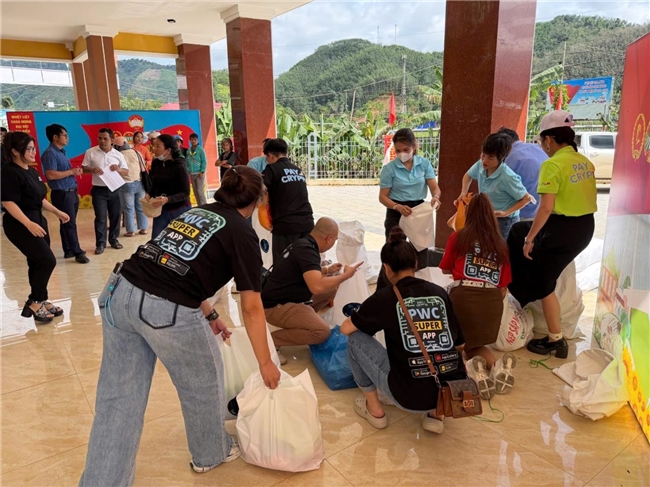 PWC 越南团队深入会安受灾最严重的区域,分发粮食、饮用水、衣物、药品与儿童用品。
