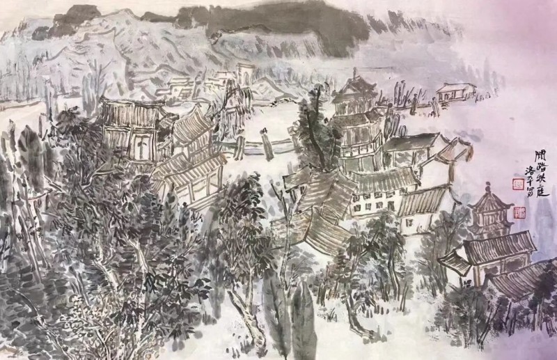 洛平自幼习字,后研习篆刻、诗文,河南大学求学期间专攻山水,受教于丁中一、袁汝波等老师,期间又研修于中国书协书法专业,受教于李刚田、聂成文等老师。对艺术的执着和追求从未懈怠,他创作之余常背起画囊,循“车辙马迹半天下”之言,游历大江南北描绘壮美山川、风物民俗,以自己的笔墨语言“写我胸中丘壑”。他的作品即偏重于北派山水风骨雄浑的气势与布局,也强调南派山水的气韵高华,力求在雄强的气势中,塑造出温润华滋的韵味。他的画作不仅仅是对传统山水画的传承,更是对其的创新和发展。